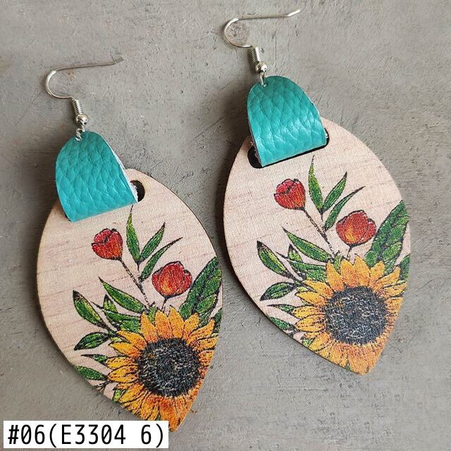 送料無料 水彩絵の具夏ストライプブルーボンネットひまわり花柄木製イヤリング女性 2022 est 夏のイヤリング サマー 夏物 ヘアアクセサリー 指輪 フラワーデザイン AE33211008093405188484