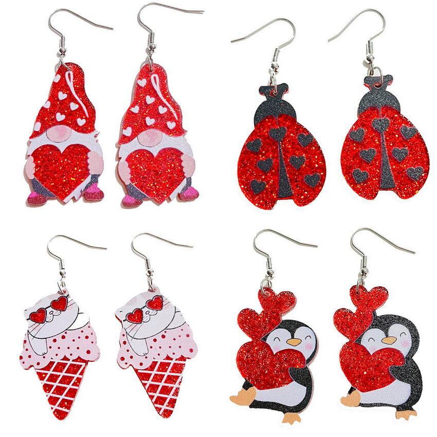 送料無料 グリッターアクリルバレンタインの Gnome ペンギンテントウムシハートイヤリング女性 2023 かわいい動物イヤリングジュエリー 大人ガーリー スウィート キュート カジュアル 指輪 AE33211008039980943591