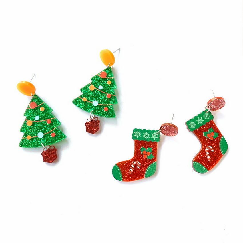 送料無料 グリッターアクリルストッキングソックスイヤリング女性 2022 クリスマスイヤリングギフトジュエリー タイツ 指輪 AE33211008034557874395