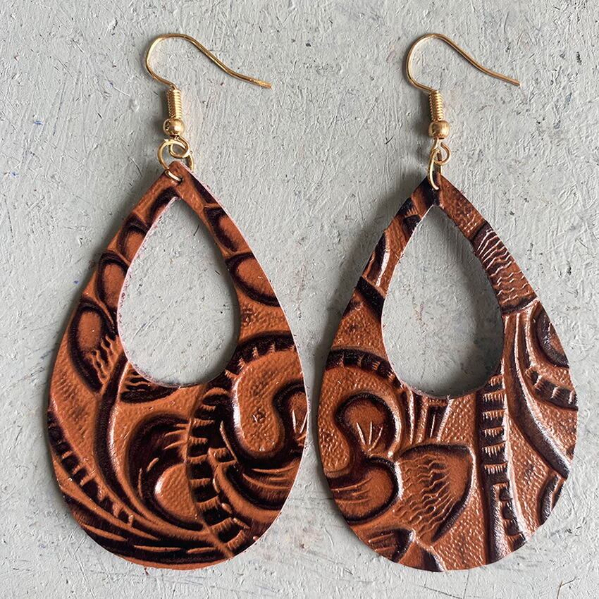 送料無料 ハンドメイドフローラルエンボスレザーティアドロップ型本革イヤリング自由奔放に生きる農家ヴィンテージジュエリー 花柄 指輪 天然 ビンテージ AE33211008047388722867