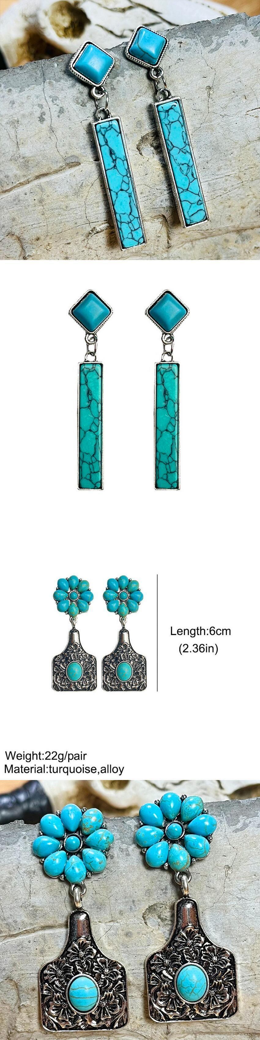 送料無料 西洋ビーズターコイズサグアロサボテンイヤリング女性ターコイズクラスターフラワーイヤリング南西部ジュエリー 指輪 フラワーデザイン AE33211008014327823411