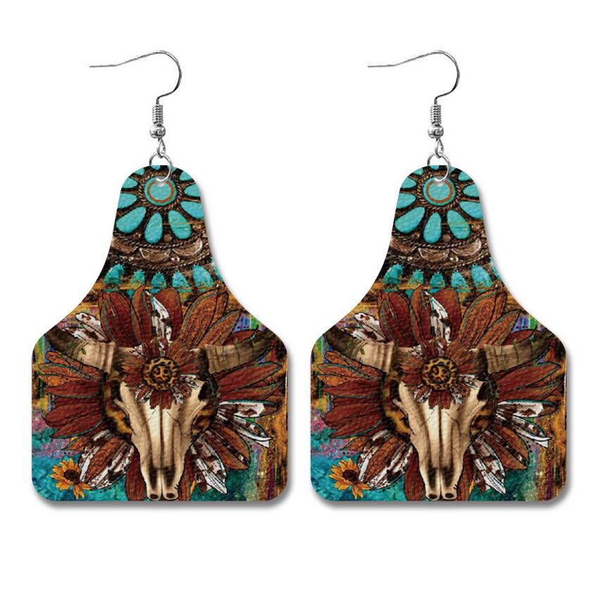 送料無料 2023 PU レザーターコイズコンチョ牛タグ西洋イヤリング女性牛ヘッドひまわりラウンドイヤリングジュエリー 指輪 フラワーデザイン AE33211008018754088742