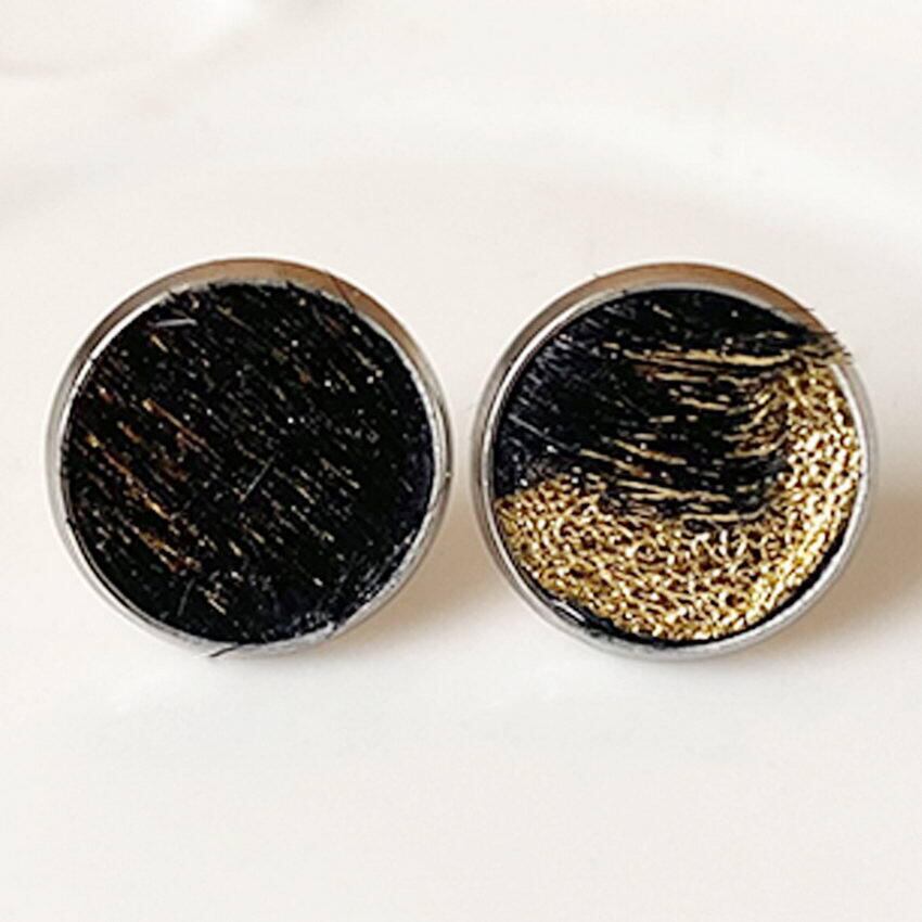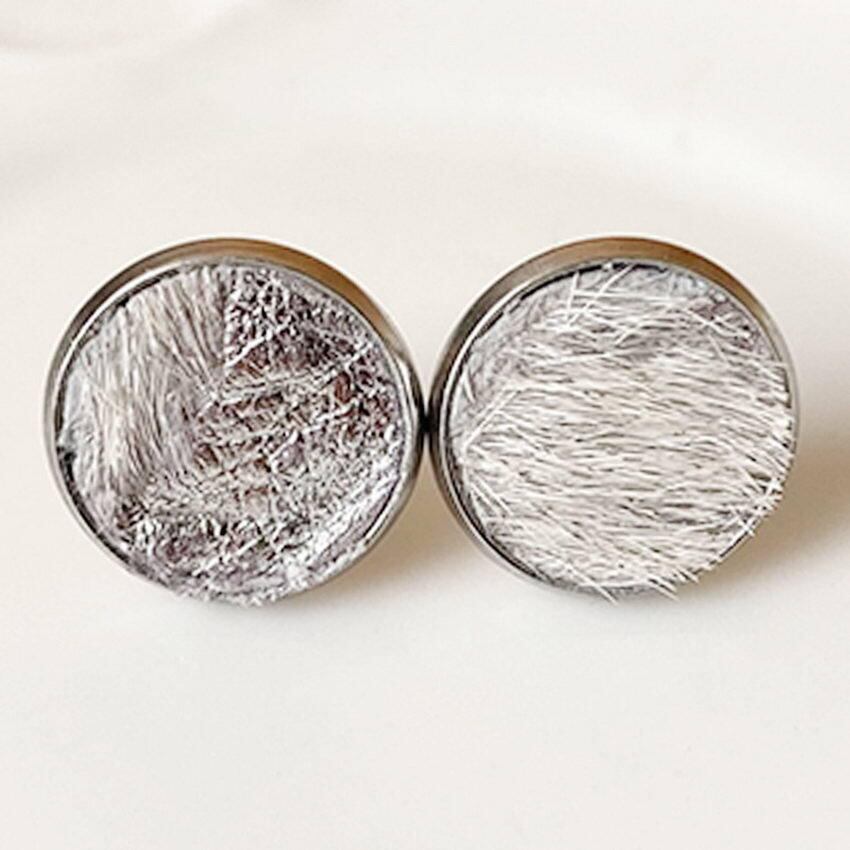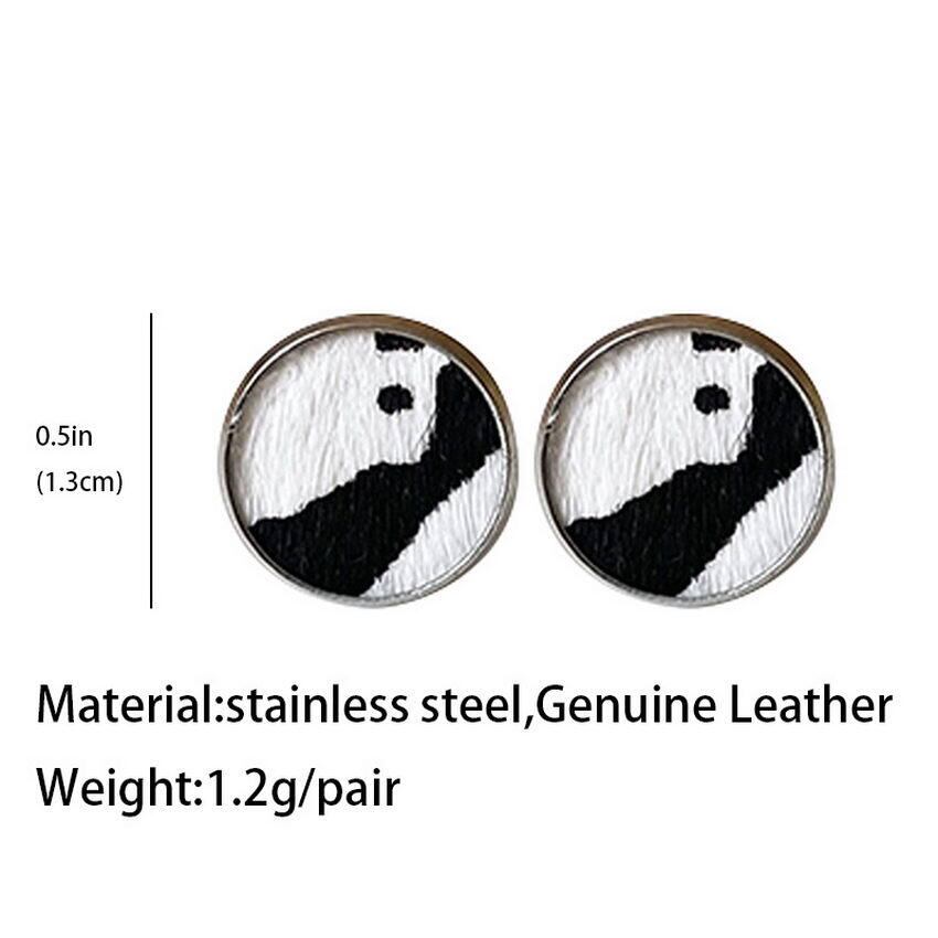 送料無料 本物の毛皮の革モザイク ラウンド ステンレス鋼ポスト イヤリング女性メタル プリント レザー ジュエリー 指輪 天然 AE33211008042997625762