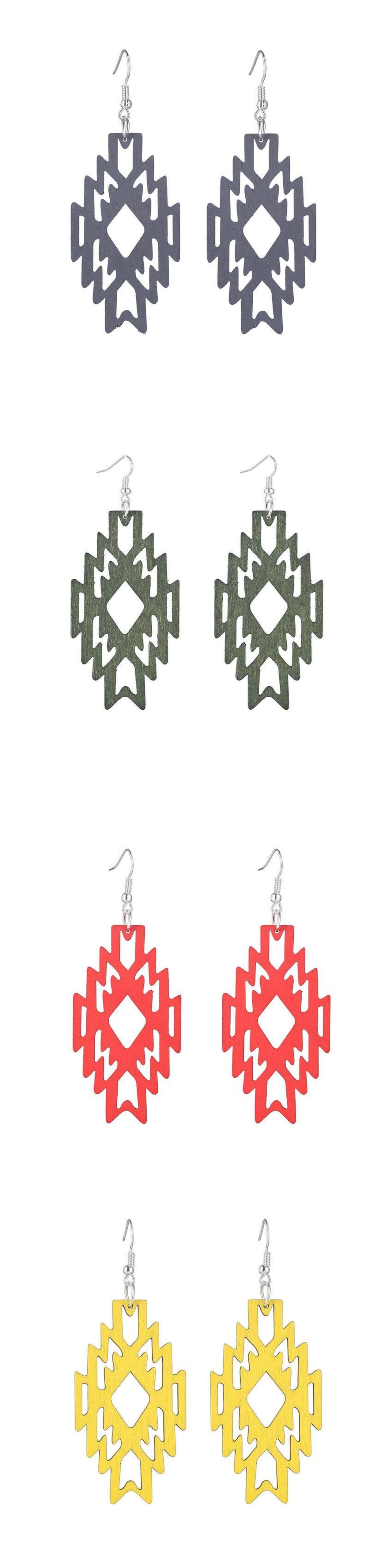 送料無料 8 色オプション レーザー カット木材アステカ イヤリング ウエスタン レッド イエロー ブルー木製迷路ステートメント イヤリング 指輪 AE33211008075176646094