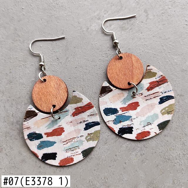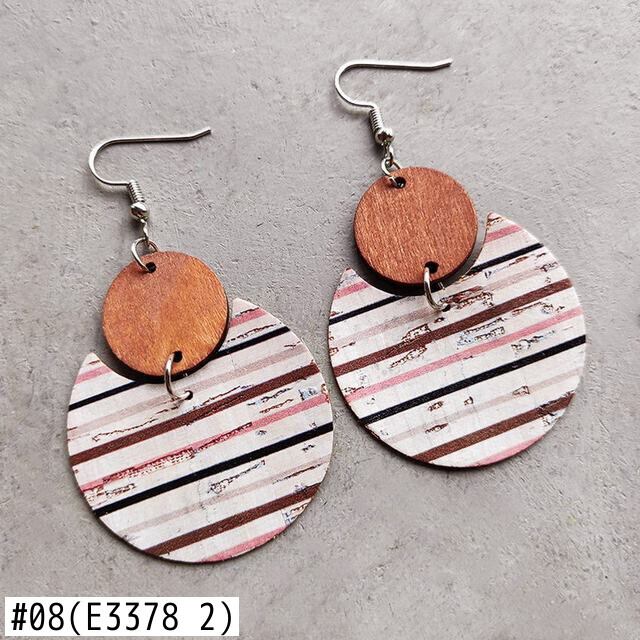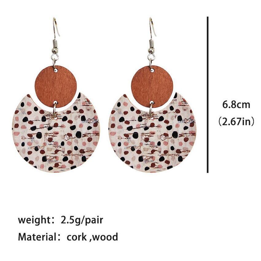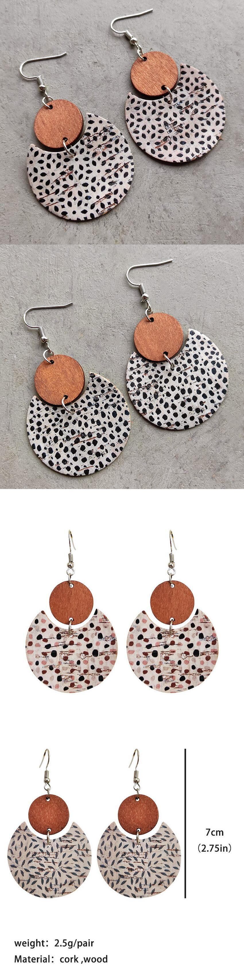 送料無料 ラウンド ウッド ディスクとフレック ストライプ プリント コルク サークル カットアウト ステートメント イヤリング レディース ハーフムーン スポッティング レザー コルク イヤリング 指輪 AE33211008050958652082