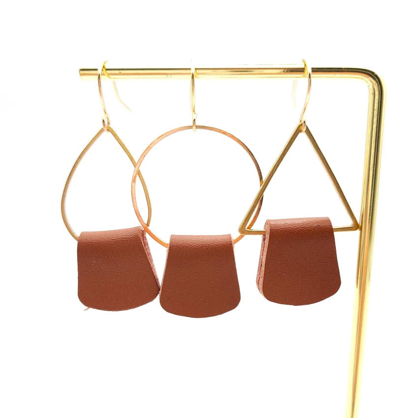 送料無料 本革つ折りラップ銅線三角形サークルイヤリング女性 2021 サンプルジュエリーイヤリングギフト レザー 指輪 天然 AE33211008063510943107