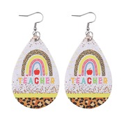 送料無料 ヒョウ虹アップル教師イヤリング女性トレンディな両面プリント PU レザーティアドロップイヤリング教師ギフト 指輪 AE33211008010939811149