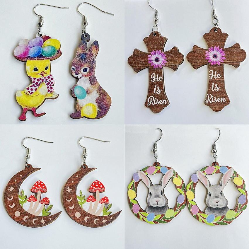 送料無料 楽しい木製漫画イースターエッグウサギイヤリング女性 2023 彼は上昇信仰クロスイヤリングジュエリー 指輪 AE33211008028108525462