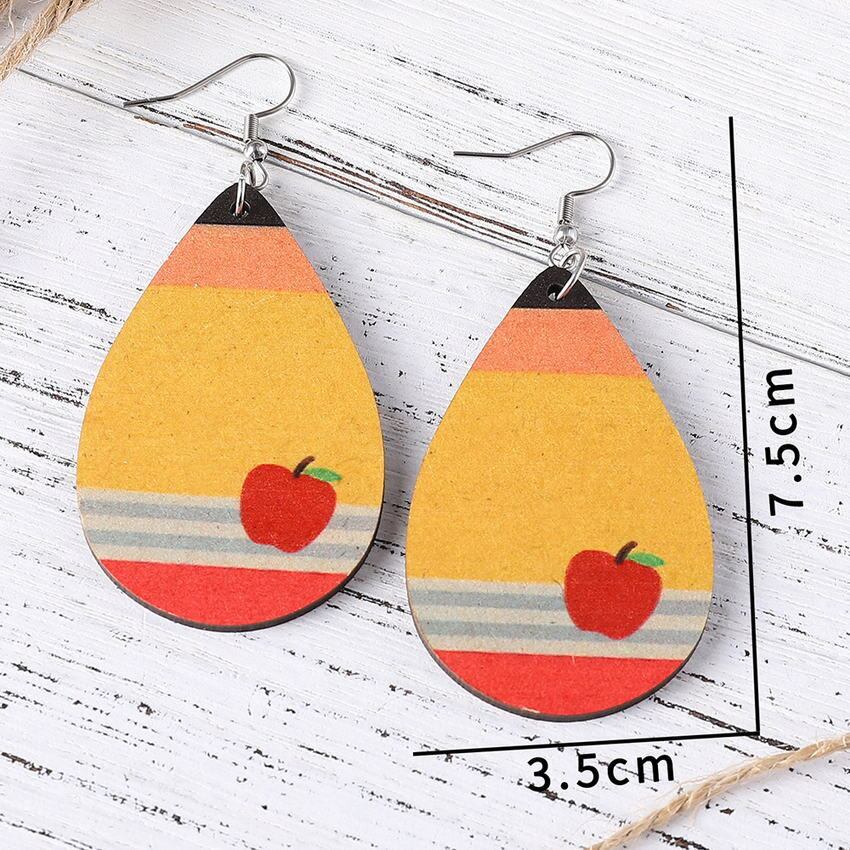 送料無料 愛らしいアップルペンシルティアドロップ教師イヤリング女性木製新学期イヤリング両面教師ギフト 指輪 AE33211008072506329238