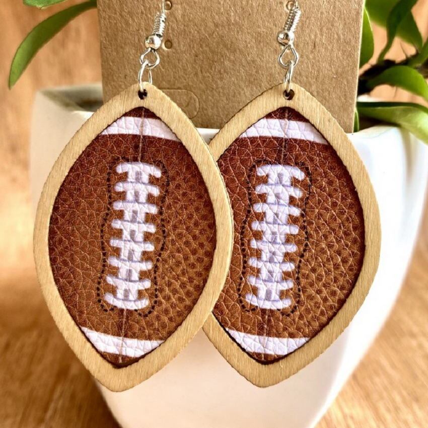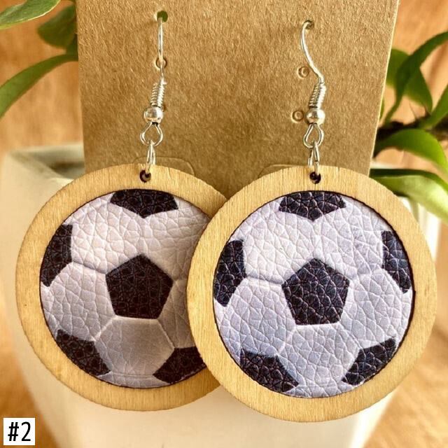 送料無料 バーリーウッド フレーム インセット レザー 野球 フットボール パターン ラウンド ウッド イヤリング レディース est 球技 スポーツ イヤリング ジュエリー 指輪 AE33211008050192237923
