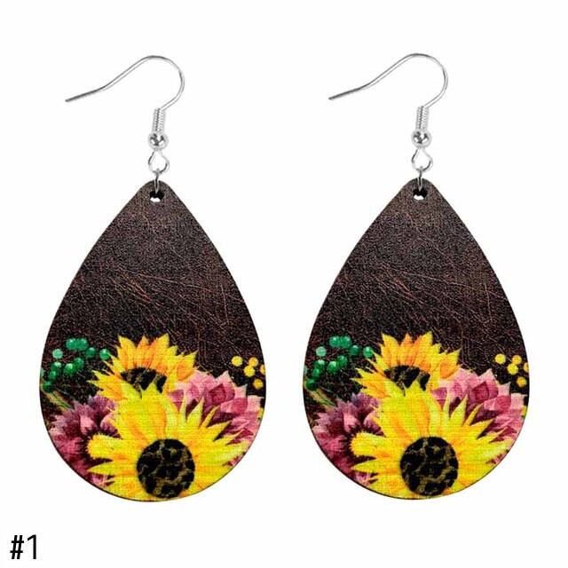 送料無料 西部の牛のテクスチャひまわりブーツティアドロップ木製イヤリング女性 2023 ヒョウシェブロンイヤリング 指輪 フラワーデザイン AE33211008068721738684
