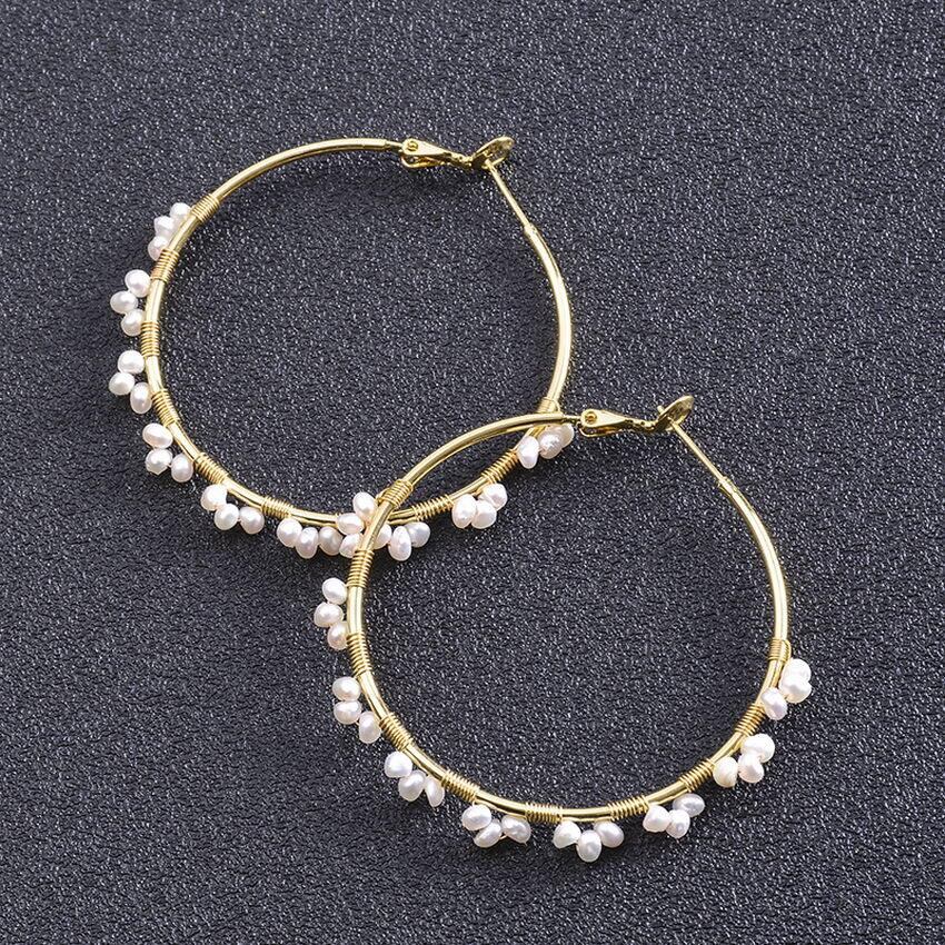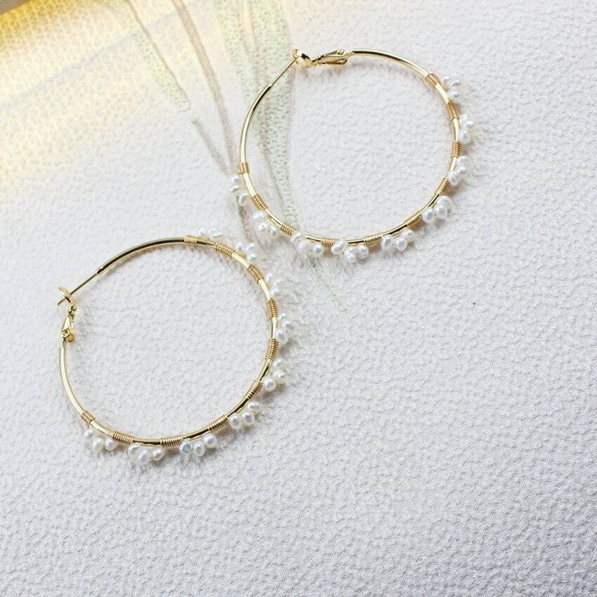 送料無料 ゴールドワイヤーラップ淡水真珠フープイヤリング女性ブライダル銅大円イヤリングジュエリー パール 指輪 AE33211008053569690279