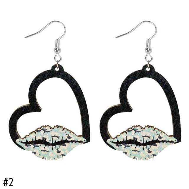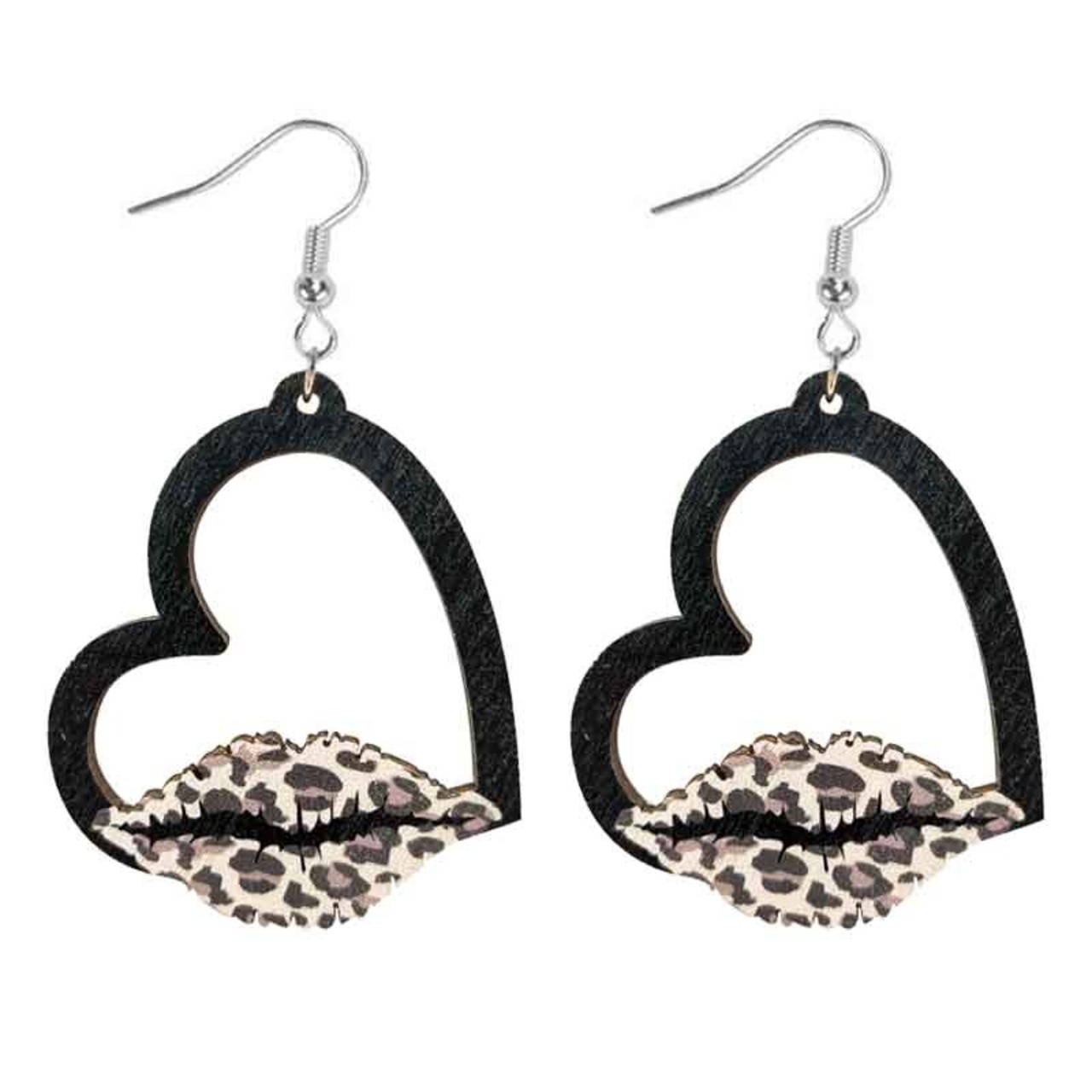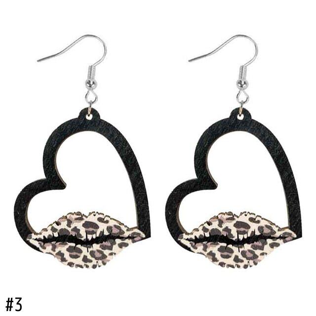 送料無料 レーザーカットウッドハートヒョウリップイヤリング女性 2023 ユニークなジュエリーガールフレンドギフト彼女 指輪 AE33211008056354473766