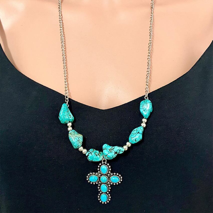 送料無料 エスニック ターコイズ カウ タウレン クロス ペンダント ネックレス ロング カショー フラワー ネックレス 2021 トライブ ジュエリー レース フラワーデザイン AE33211008055936993343
