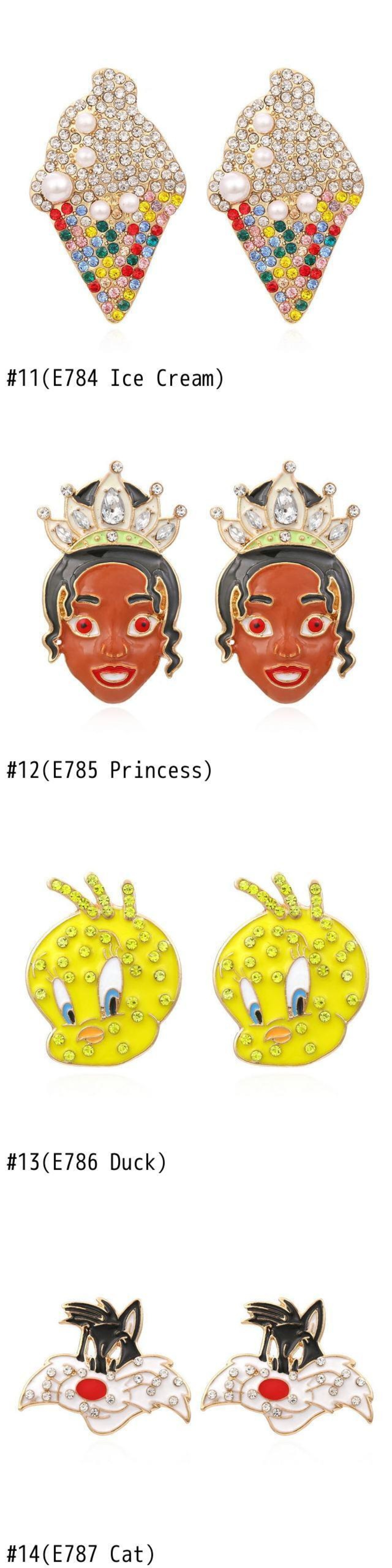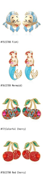 送料無料 舗装されたカラフルなクリスタルかわいい漫画の動物のスタッドのイヤリング 2021 アヒル猫カボチャバルーンマーメイドチェリーイヤリングジュエリー 指輪 AE33211008064223551413