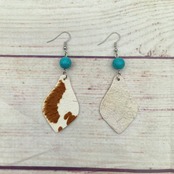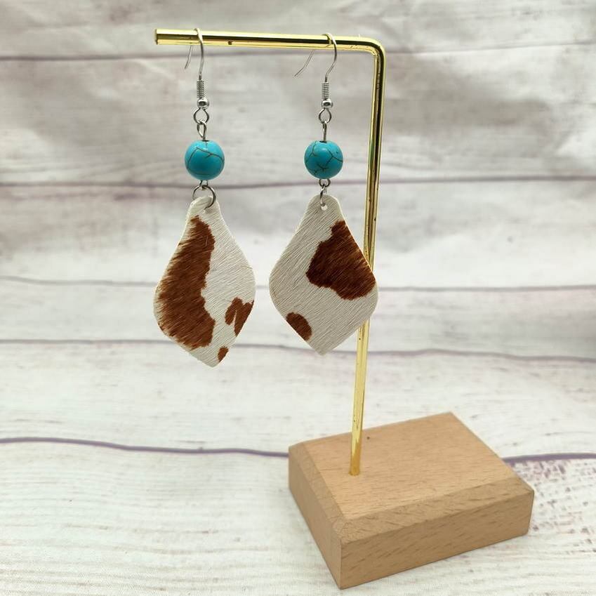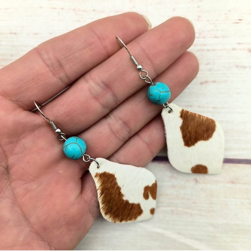 送料無料 ターコイズ ビーズと本物の牛革レザー ティア ドロップ ダングル イヤリング女性 2023 ウエスタン ジュエリー 指輪 天然 AE33211008078566237829