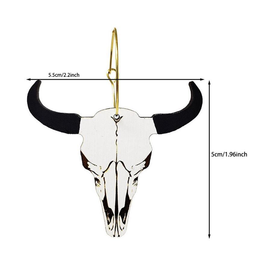 送料無料 ブラック ホワイト ウッド ブル スカル イヤリング レディース ワイルド ソウル サウスウェスタン ジュエリー 指輪 AE33211008062815979201