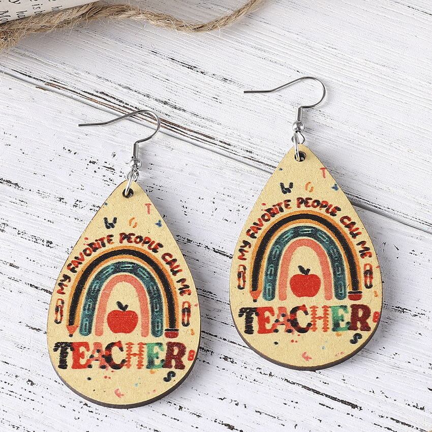 送料無料 送料無料教師生活イヤリング 2023 両面プリント鉛筆帳ウッドティアドロップ教師イヤリング学校のギフトに戻る 指輪 AE33211008011977155805