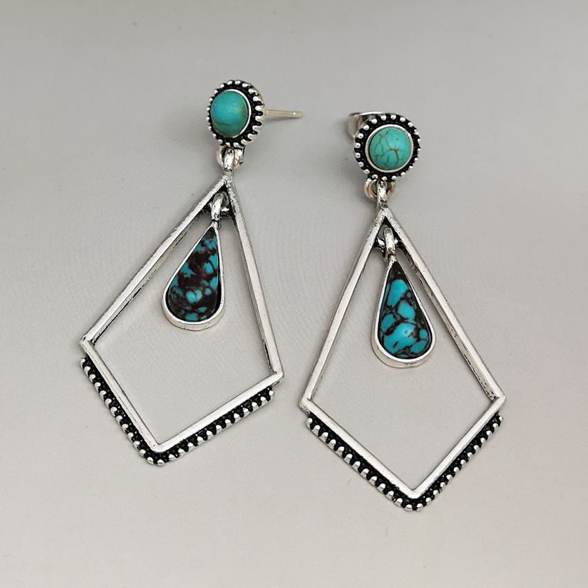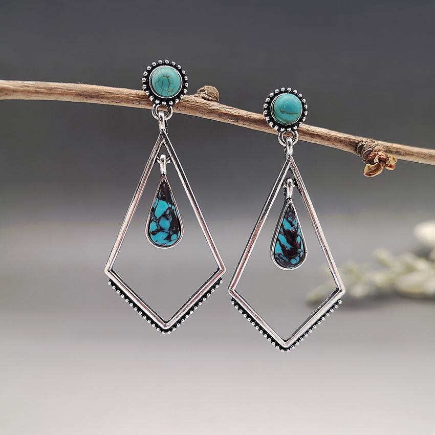 送料無料 ヴィンテージシルバーカラーターコイズティアドロップイヤリング女性 2023 ミニマリズムステートメントイヤリング安いジュエリー 指輪 銀 ビンテージ AE33211008089530010339
