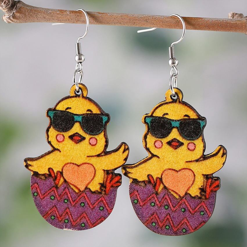 送料無料 クールチッキーひよこイヤリング女性木製手作りイースターエッグ春イヤリングジュエリー スプリング 春物 指輪 AE33211008093397491322