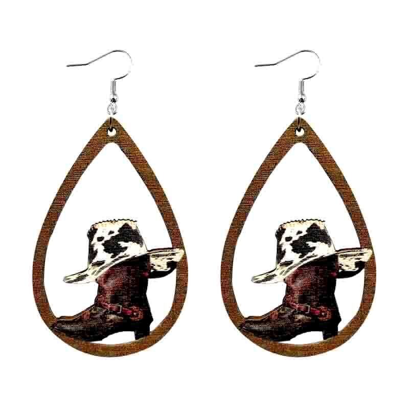 送料無料 2023 木製牛西洋イヤリング女性ひまわり牛スカルカウボーイハットブーツイヤリングウッドジュエリー 帽子 指輪 フラワーデザイン AE33211008054097125651