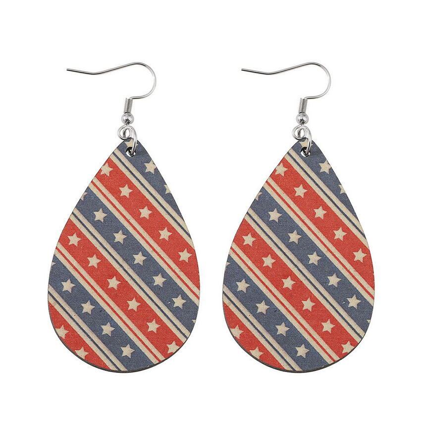 送料無料 星条旗 7月4日 イヤリング レディース 両面プリント ウッド レッド ホワイト ブルー アメリカ国旗 イヤリング ストライプ 指輪 AE3321100801049740923