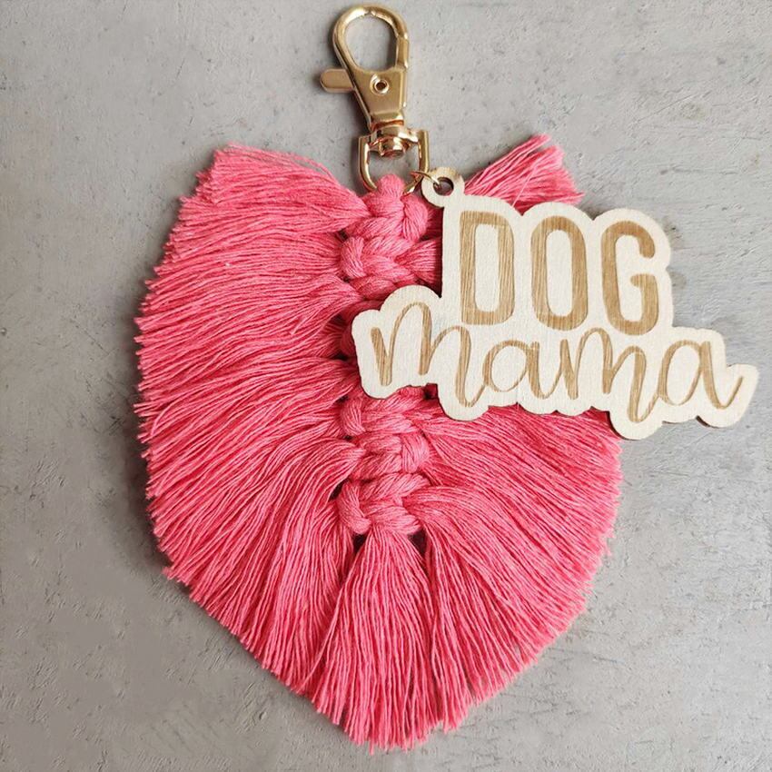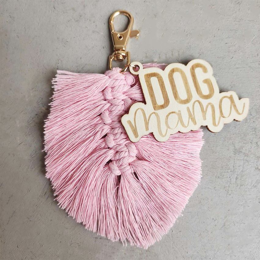 送料無料 自由奔放に生きるマクラメ Tel 犬 MAMA キーホルダー刻印木製ママキーチェーンバッグチャームママ母の日ギフトママジュエリー AE33211008093682500403