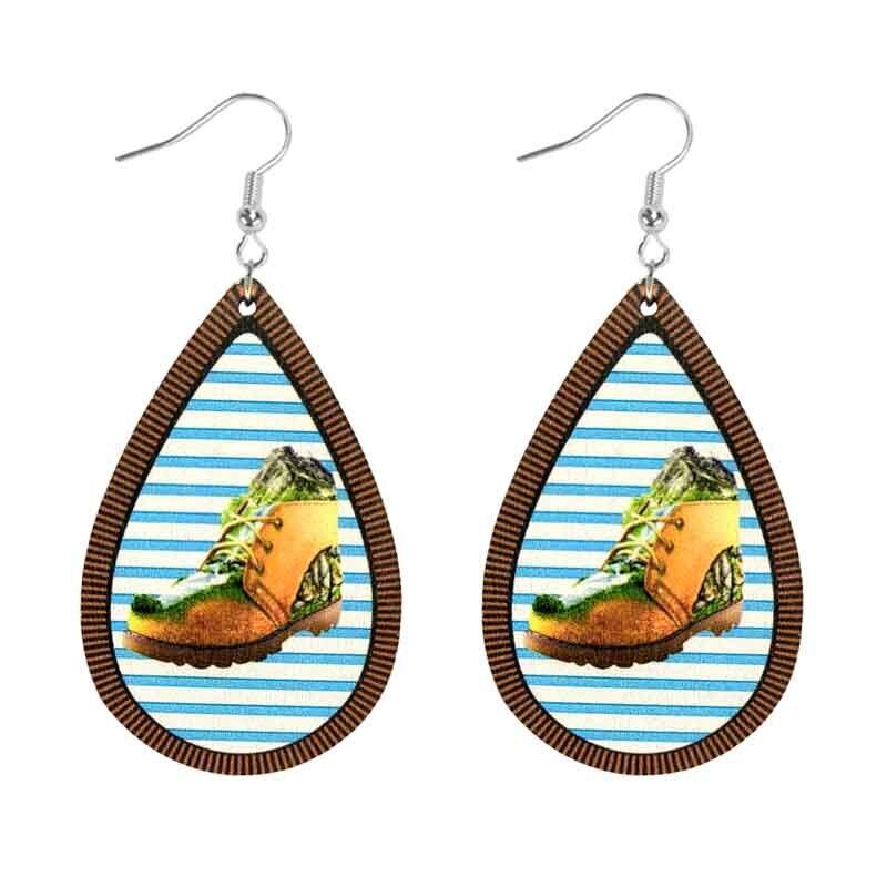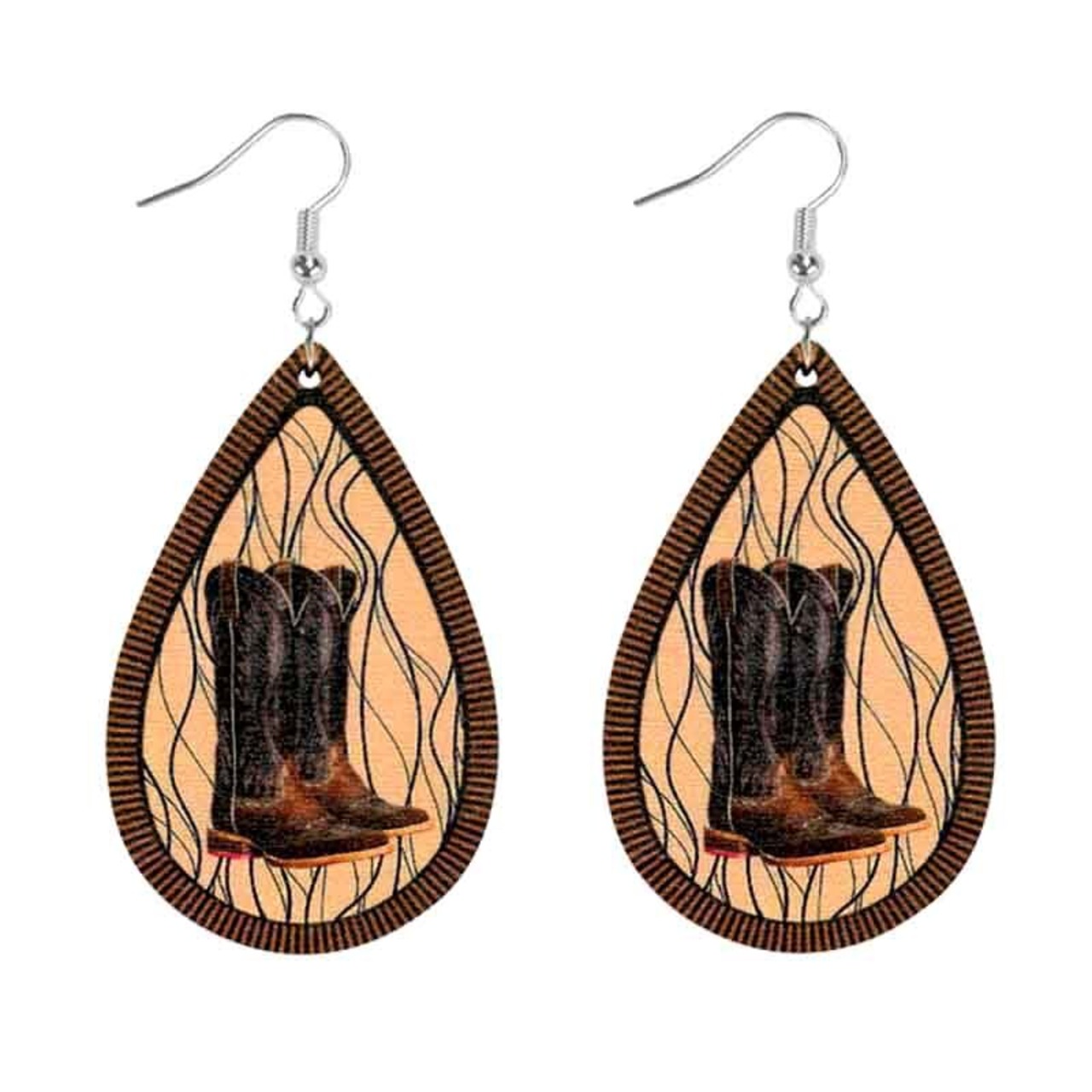 送料無料 西洋牛ブーツイヤリング女性片面プリント木製ティアドロップユニークなイヤリング 2023 エスニックフェザーカウイヤリング 指輪 AE33211008011243256759