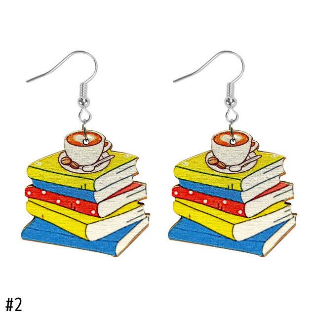 送料無料 木製ペンシルポットコーヒースタックブックウッドイヤリング女性新学期アールデコ教師ギフトジュエリー 指輪 AE33211008050523232196