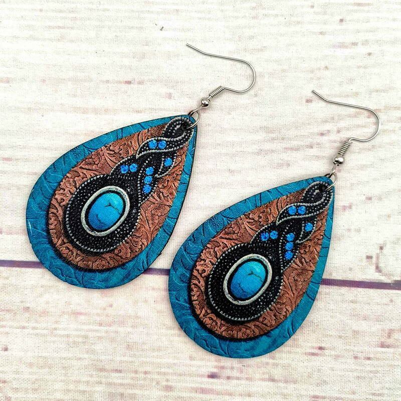 送料無料 両面ターコイズヒョウクロスパターンウッドティアドロップブラブライヤリング女性ヴィンテージ自由奔放に生きる西洋ジュエリー 指輪 ビンテージ AE33211008091244101562