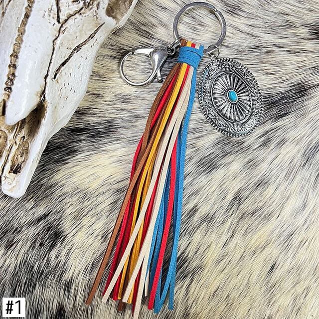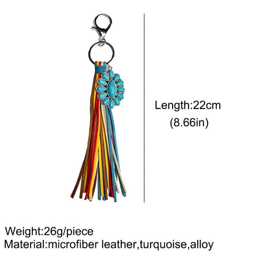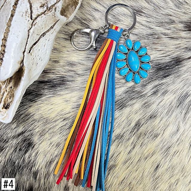 送料無料 ターコイズ フラワー サボテン コンチョ チャーム ウエスタン キーホルダー カラフル フェイクスエード テルフリンジ キーチェーン キーリング 簡単スナップフック スウェード ファー フラワーデザイン AE33211008023109653589