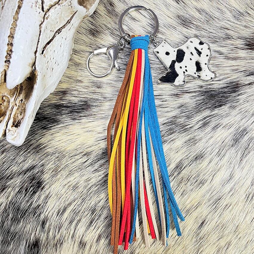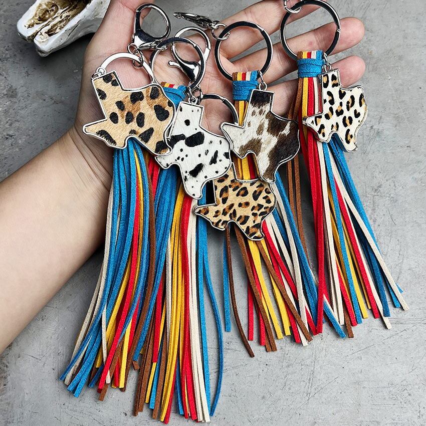 送料無料 本革 ヒョウ柄 テキサス キーチェーン ボヘミアン マルチカラー フェイクスエード Tel キーリング キーチェーン ギフト 彼女へ スウェード レザー ファー 天然 AE3321100806842500302