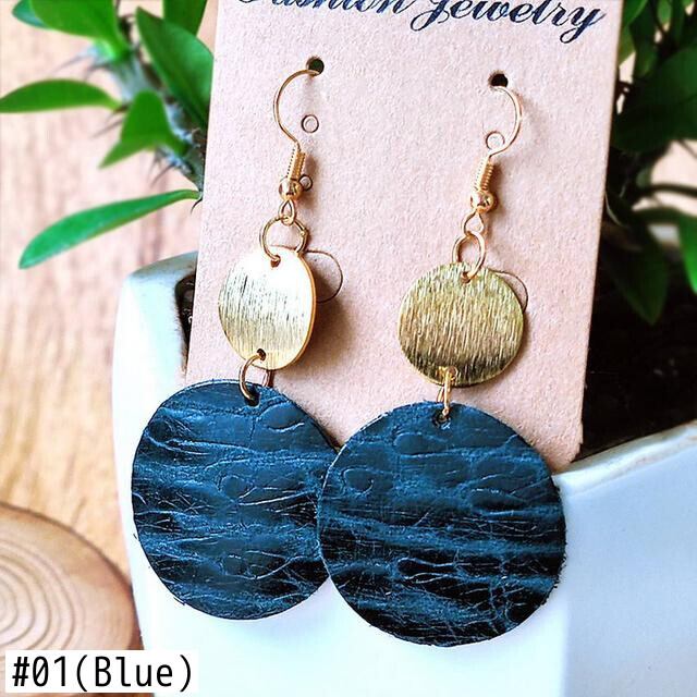 送料無料 層状銅ディスク本革ラウンド ダングル イヤリング女性幾何ヴィンテージ ジュエリー レッド レザー 指輪 天然 ビンテージ AE33211008079205999885