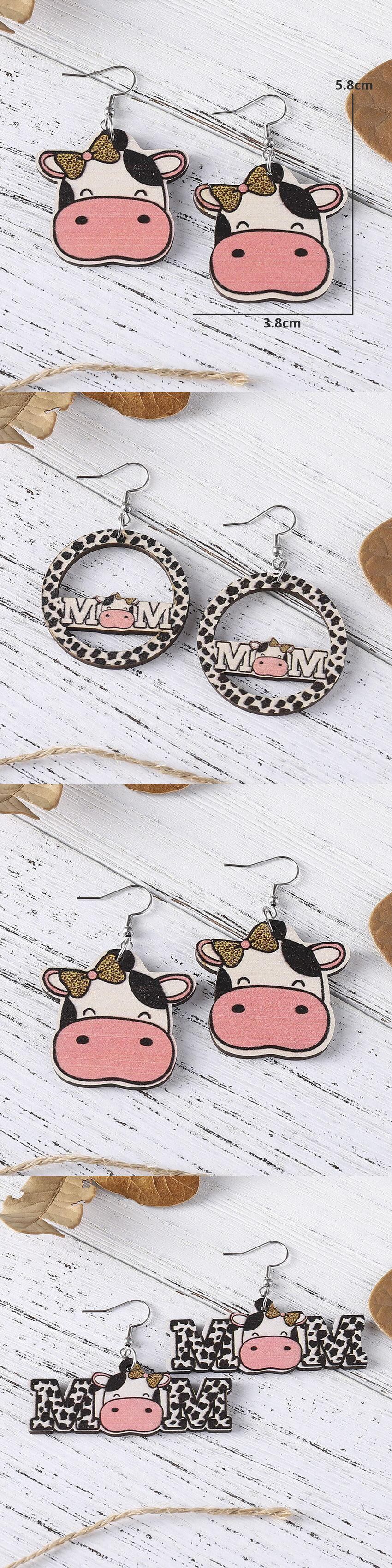 送料無料 アニマルプリント木製牛猫イヤリング女性 2023 木材酪農牛ママイヤリング牛ファームジュエリー 指輪 AE33211008024914843456