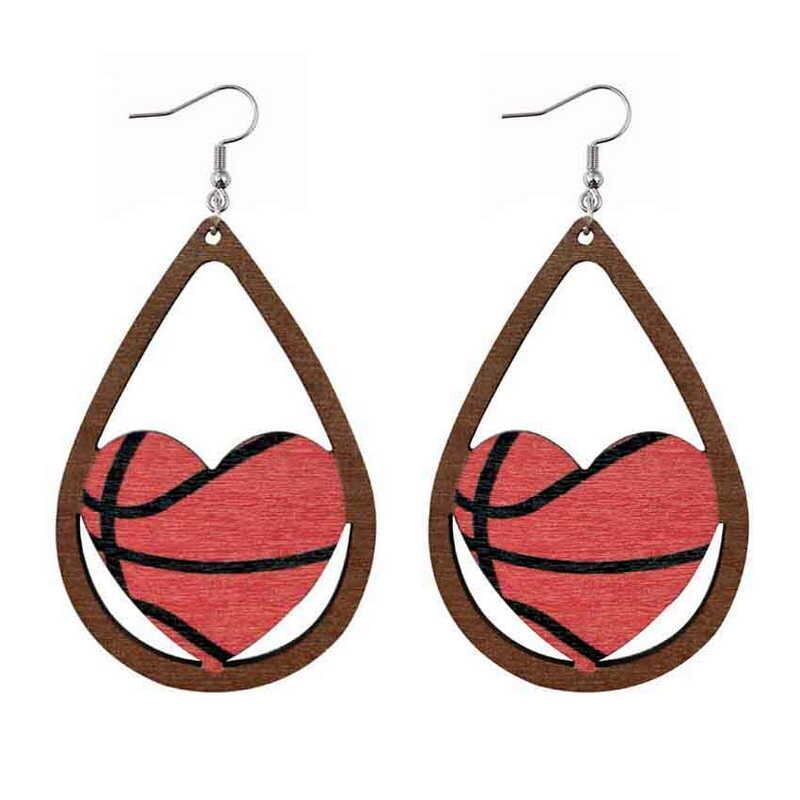 送料無料 ティアドロップアクセントウッドサッカー野球バスケットボールハートイヤリング女性スポーツボールイヤリングジュエリー 指輪 AE33211008020048715962