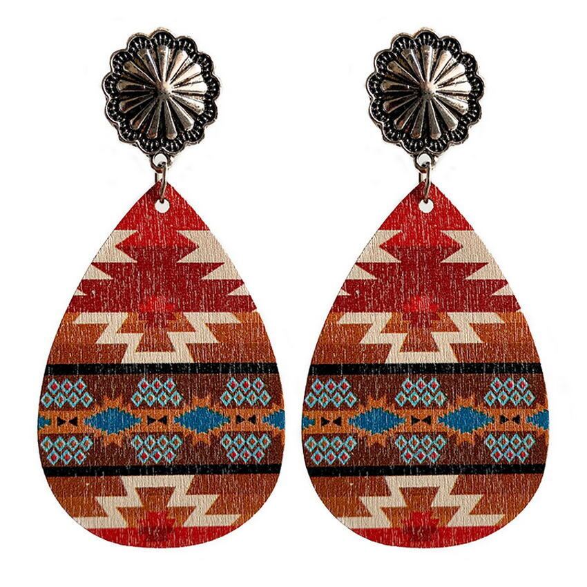 送料無料 カラフルなアズテックスタイル抽象柄プリント木製水イヤリング 2022 モザイクイヤリング女性ジュエリーギフト 指輪 AE33211008077729124131