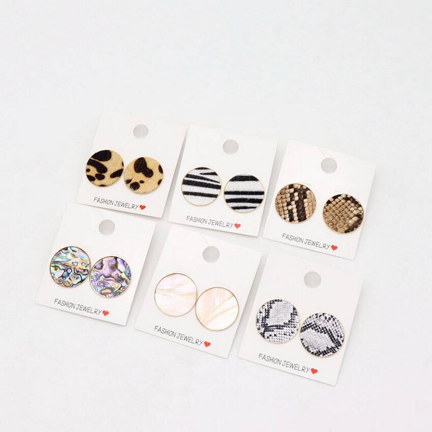 送料無料 大きな丸いアワビ スタッド イヤリング 薄い金属ベース 2021 サンプル ヘビ皮 ヒョウ ゼブラ アニマル プリント ブティック ジュエリー 指輪 AE33211008020789255625
