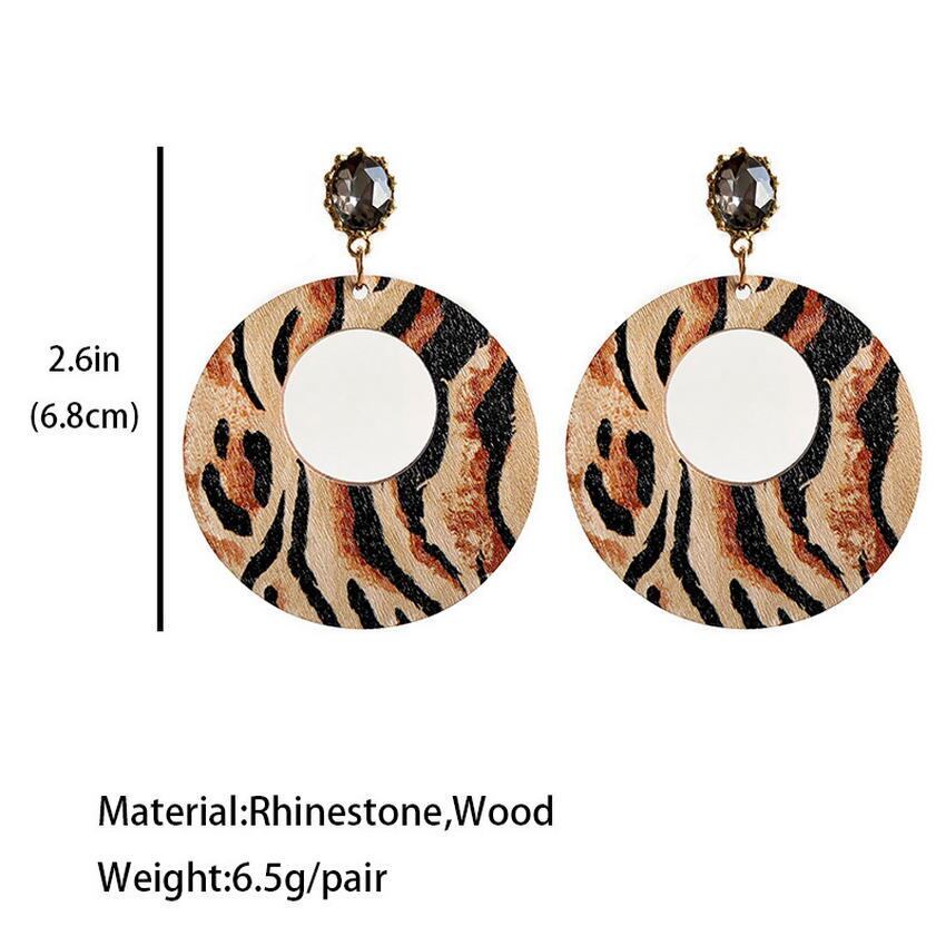 送料無料 牛アニマル プリント オープン ラウンド ウッド イヤリング ファセット オーバル クリスタル トップ 2022 ジュエリー イヤリング レディース 指輪 AE33211008027590100671