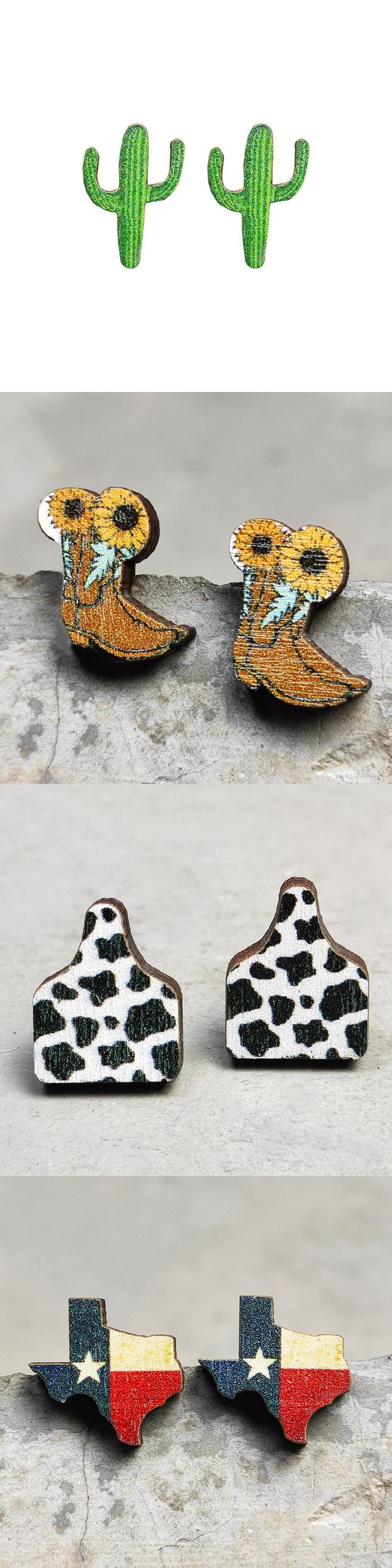 送料無料 かわいいミニ木製サボテン牛動物ウエスタンスタッドピアス女性牛ウッド牛タグブーツイヤリングジュエリー 大人ガーリー スウィート キュート カジュアル 指輪 AE33211008040541948466
