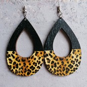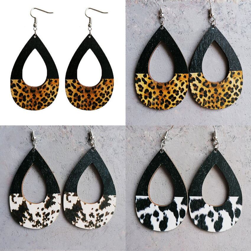 送料無料 ヒョウ浸漬木材オープンティアドロップイヤリング女性ツートーン木製チータープリント水イヤリングブティックジュエリー 指輪 AE33211008038633994643