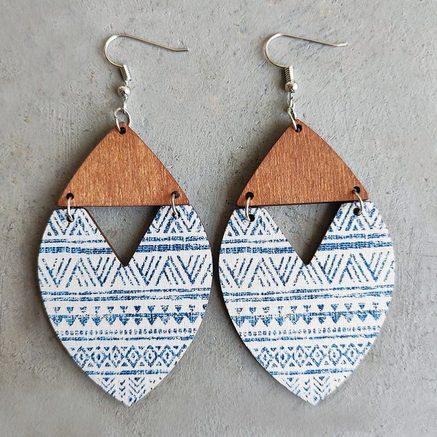 送料無料 幾何学三角形木製アステカ柄エスニックイヤリング女性 2022 南西ウッドイヤリングジュエリー 指輪 AE33211008097979109962