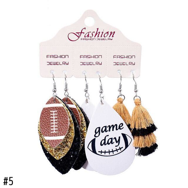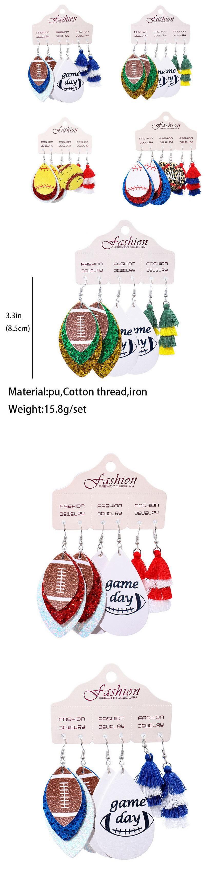 送料無料 3 ペア/セット ゲームの日 PU レザー野球イヤリング セット女性スポーツ テーマ層状電話ソフトボール イヤリング ジュエリー レッド 指輪 AE33211008022927522274