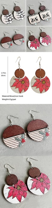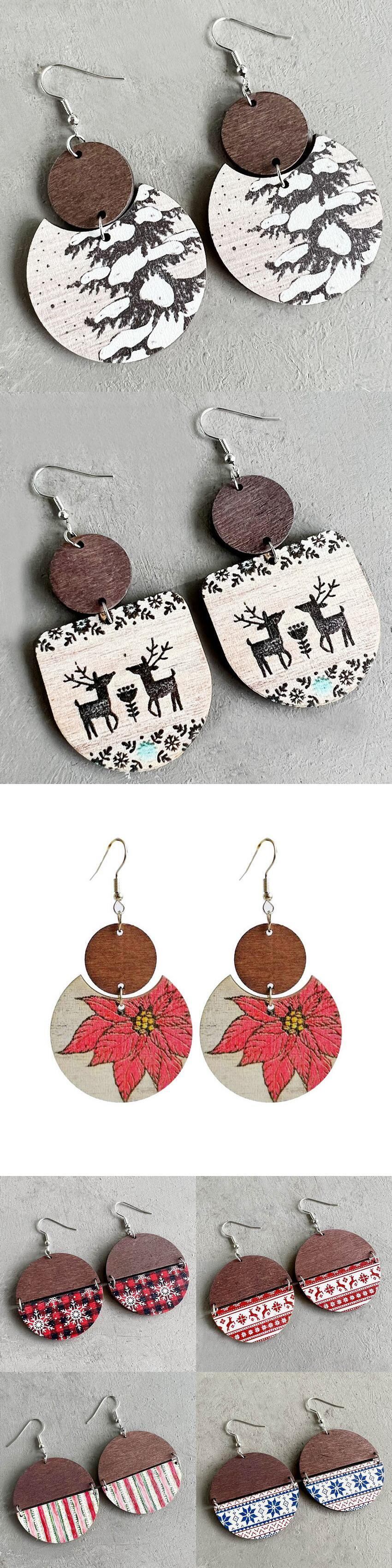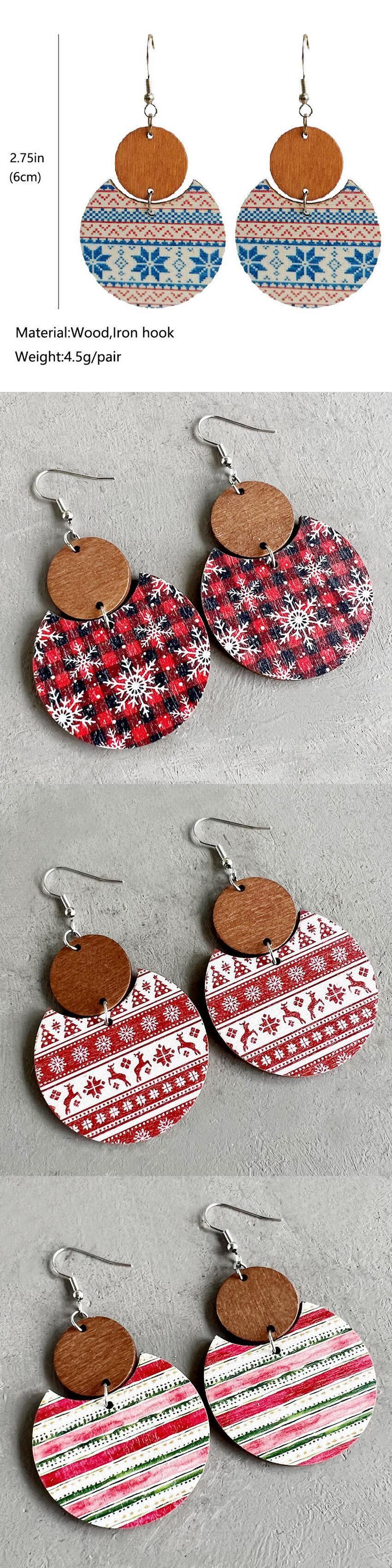 送料無料 ダブル丸型木製クリスマスイヤリング2022年柄スノーフレークストライプステートメントイヤリングジュエリー 指輪 AE3321100807116208255