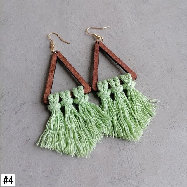 送料無料 手作りの三角形の木製マクラメイヤリング女性軽量マクラメフリンジイヤリング自由奔放に生きるジュエリー 指輪 AE33211008019063684327