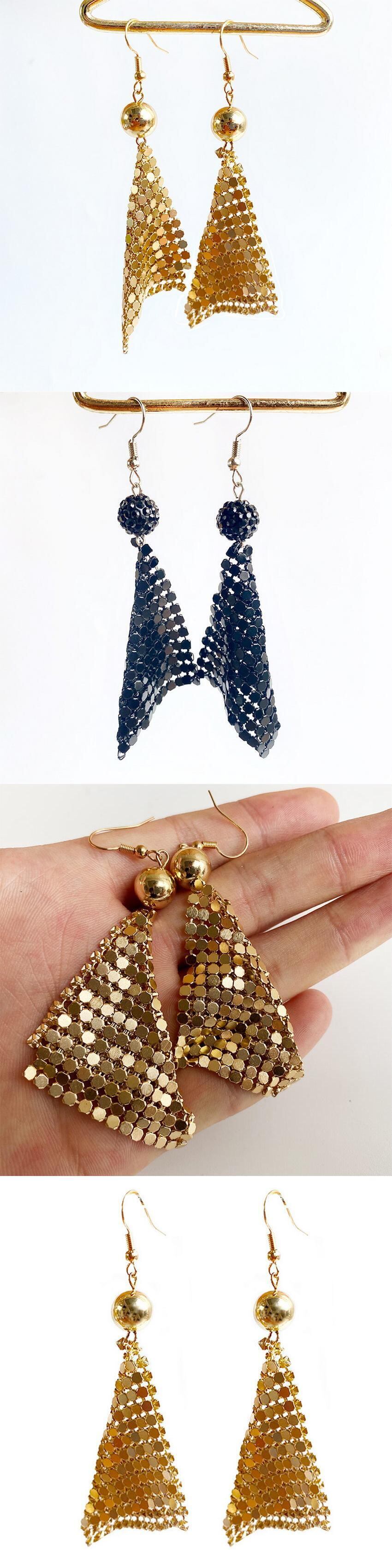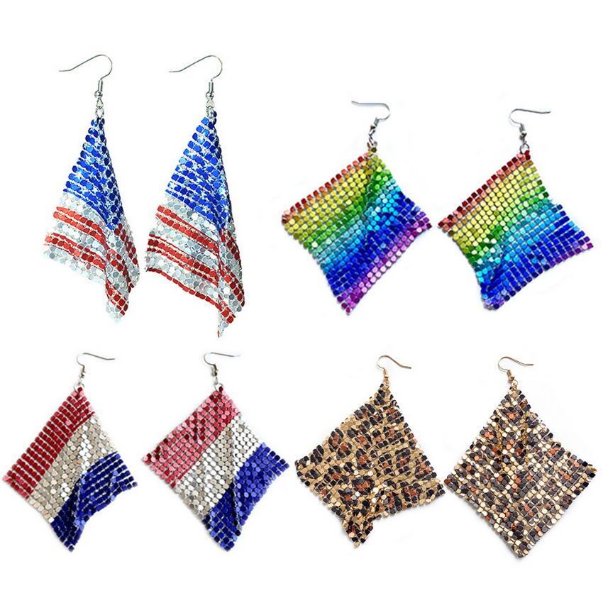 送料無料 シャインレインボーメタルスパンコールイヤリング 2021 折りたたみ式フランス英国米国旗プリントスクエアメッシュブラブライヤリングジュエリー 指輪 スクウェア AE33211008040604152703