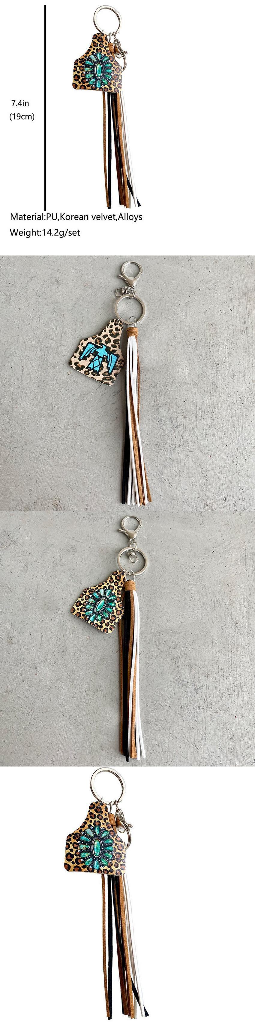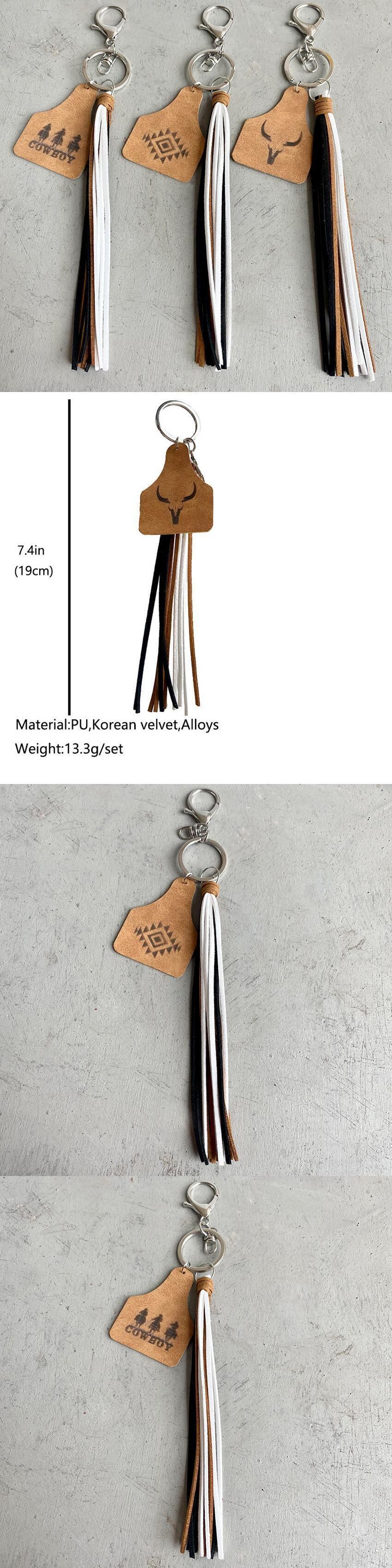 送料無料 牛プリント牛タグキーホルダー西部農場動物牛ショータグと電話キーリングキーフォブ牛ジュエリー 指輪 チェーン AE332110080324765160