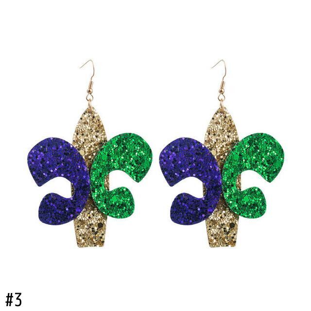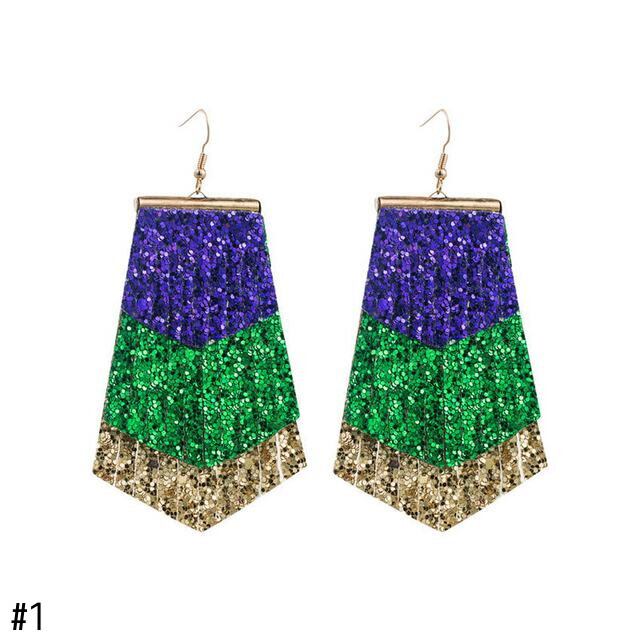 送料無料 グリッターレザーリーフイヤリング女性 2022 マルディグライヤリングパープルグリーンゴールドカラーステートメントイヤリングギフト 指輪 AE33211008069623442993