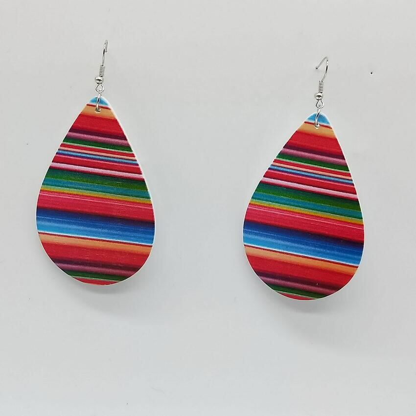 送料無料 レインボーストライプ サボテンプリント 天然木 ティアドロップピアス レディース イヤリング ナチュラル リング 指輪 AE33211008027781211273