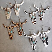 送料無料 秋ターコイズ サボテンと本革牛頭イヤリング女性 2022 西洋牛イヤリング レザー 指輪 天然 AE33211008028031398183