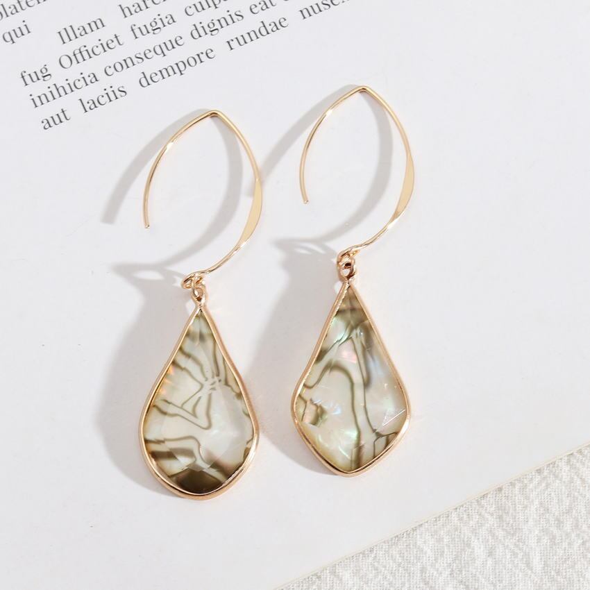 送料無料 手作り樹脂花ヒョウシェルティアドロップイヤリング女性 V 形状耳ワイヤーステートメントイヤリングブティックジュエリー 指輪 フラワーデザイン AE33211008054102048882